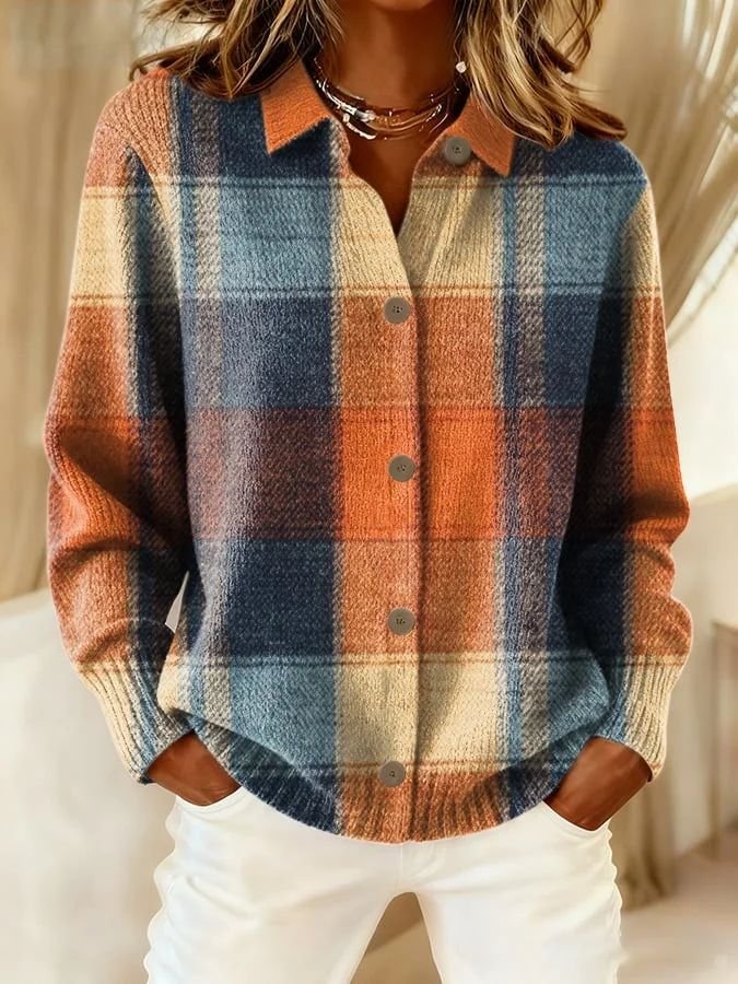 Home Apparel and Fashion Winter Clothing and Accessories Printed Cotton Fleece Pullover Checked Ladies Woolen Top