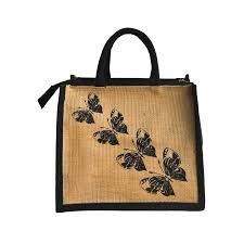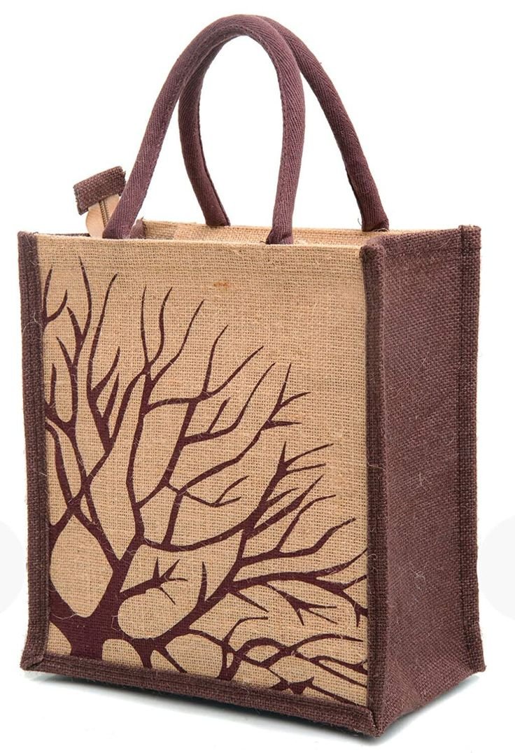 Home Apparel and Fashion Cotton, Canvas and Jute Bags Natural Brown Embroidered Jute Bag Natural Print Jute Bag